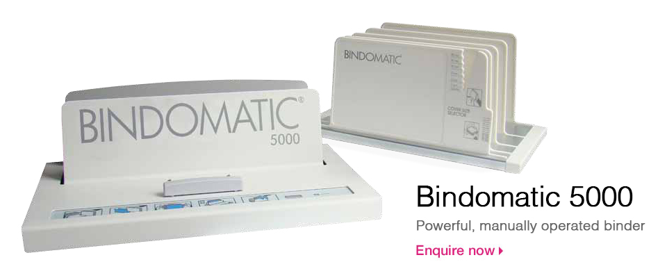 The Bindomatic 5000 is a powerful, manually operated binder designed to meet any document format demand with spine lengths up to 370mm.